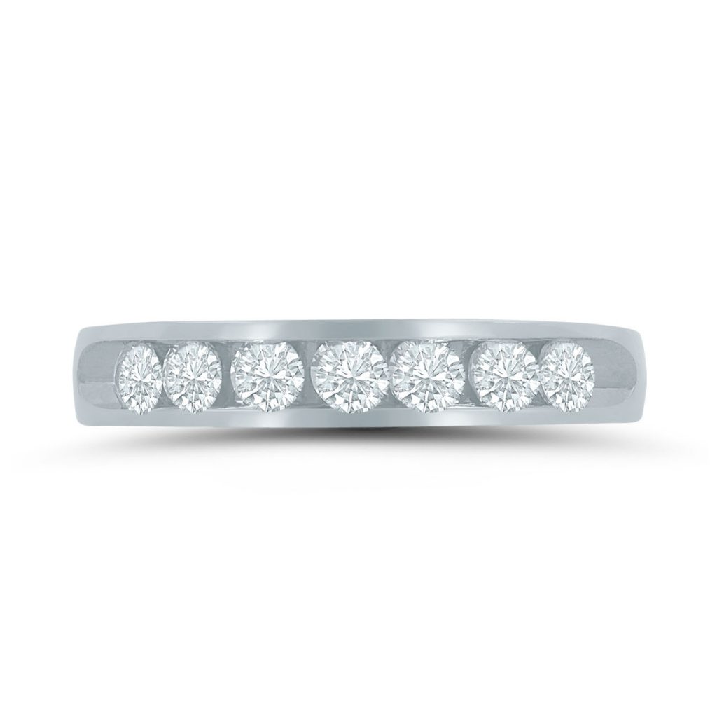 • This ladies’ diamond wedding band is available in platinum, palladium or gold.